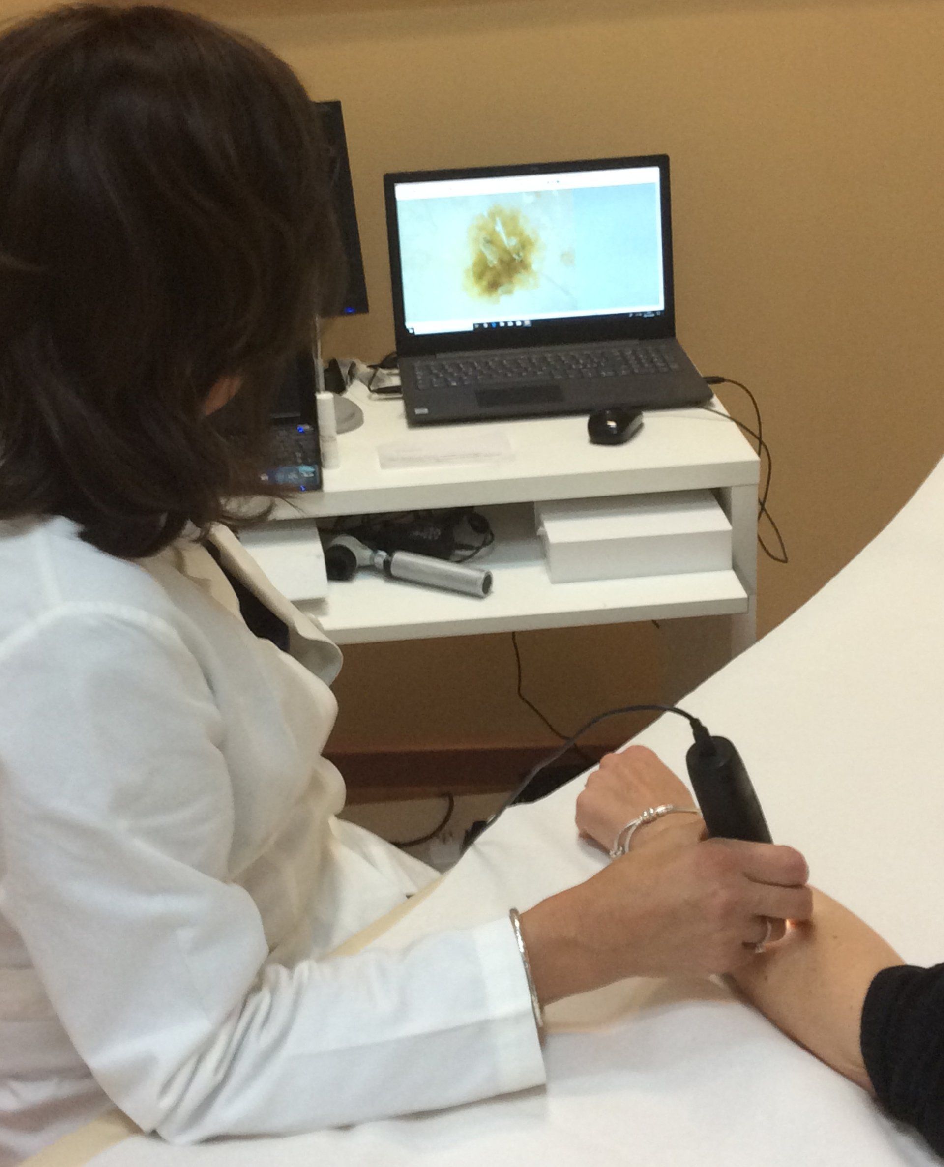 Osservazione e valutazione dei nei e delle lesioni pigmentarie in dermatoscopia.